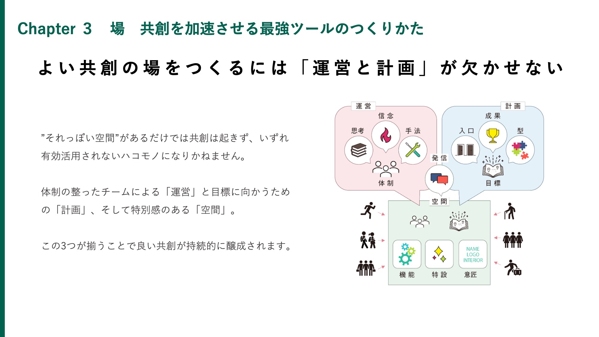 ですが、最近では空間と運営を両輪として捉える雰囲気も出てきたと思います。