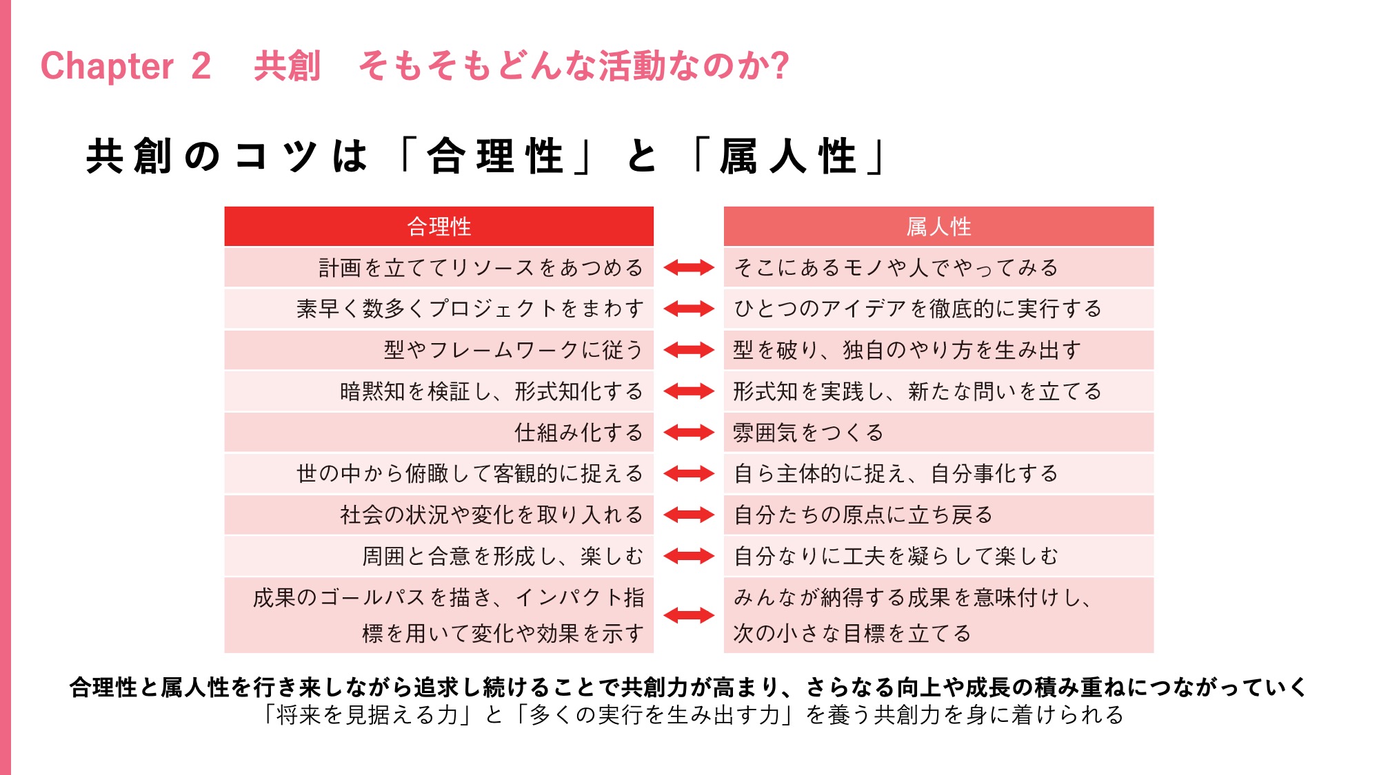 合理性とは、効率性や経済合理性を追求すること。ただし、それだけでは共創はうまくいきません。