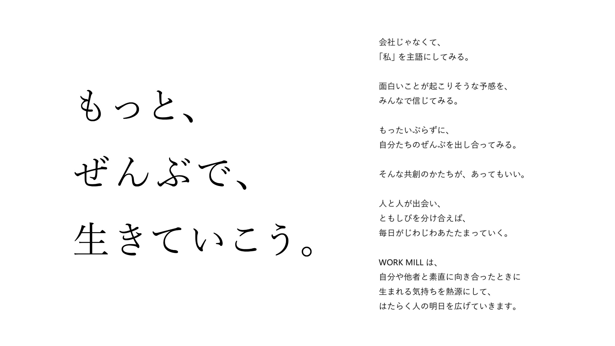 WORK MILLが10周年を迎えるタイミングで、ステートメントを「もっと、ぜんぶで、生きていこう。」へ変えたんです。