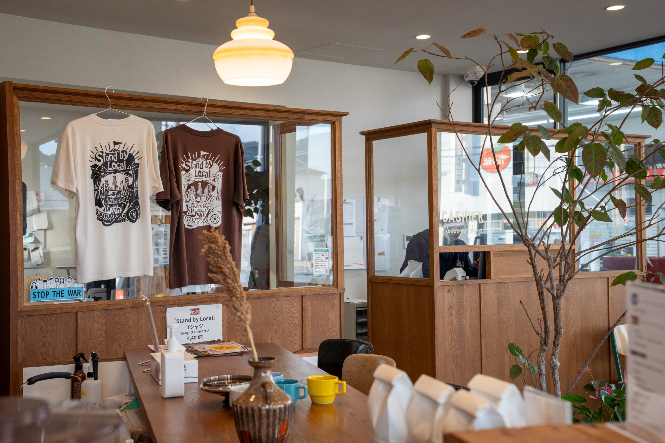 店内に入ると、ガソリンスタンドのイメージとは異なるオシャレなカウンター。ここでコーヒーを購入することができる