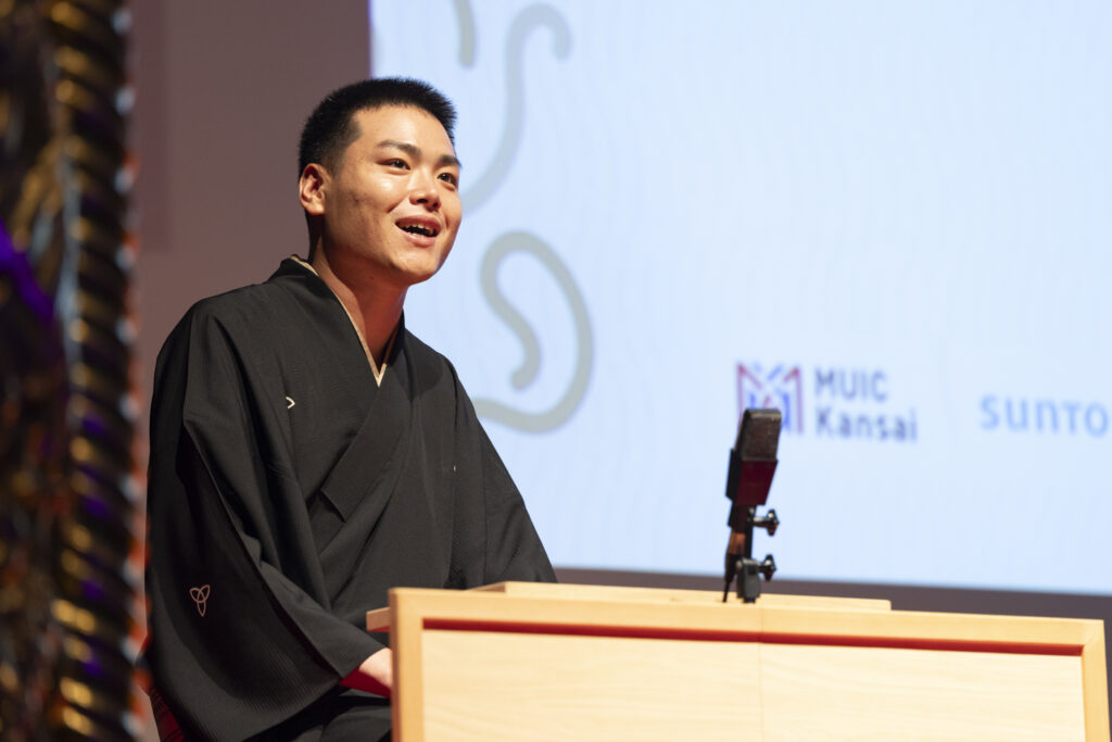 約7時間にわたるカンファレンスの幕開けを飾ったのは、大阪府豊中市出身の落語家・桂九ノ一さん。イベント名になぞらえ「せっかくなので麺の噺を」と、上方落語を代表する演目のひとつ『時うどん』を披露し、会場の空気を温めます。