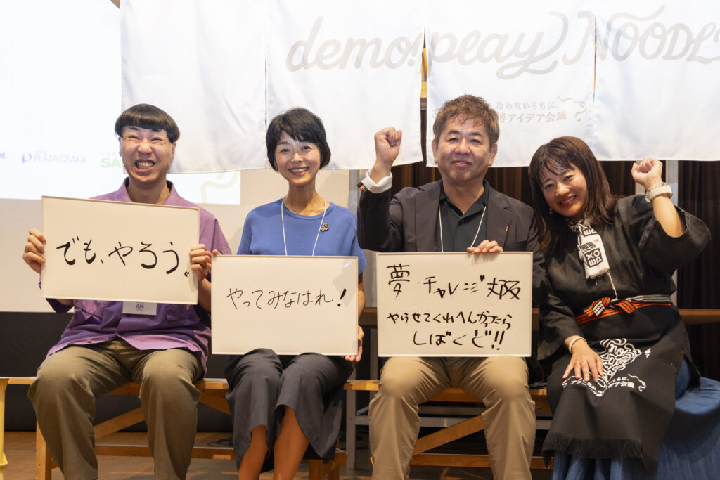 スピーカーとファシリテーターで総勢28人が登壇したdemo!play NOODLE。各セッションでは「万博を終えてどうするか」を語るだけでなく、各界のスペシャリストたちが、ときに腕組みし、眉間にしわを寄せながら、今後の大阪のあるべき姿を真剣に考えました。