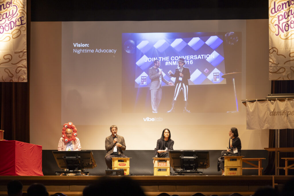 続いては、ナイトタイムエコノミー(以下、NTE)がテーマ。NTEとは、夜間の経済活動を指す言葉で、アートやエンターテインメントなどさまざまな活動を通じて、地域の魅力を発信し、消費拡大などにつなげる考え方です。ゲストスピーカーのルッツ・ライシェリングさんは、NTEに関する調査・助言を行うコンサルティング会社「VibeLab」の共同設立者で、持続可能なナイトライフカルチャーの促進に向けた活動で広く知られています。
