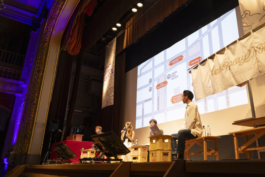 次のセッションのテーマは「なんば広場から御堂筋へ:ふざけられる特区のつくり方」。「なんば広場」や御堂筋など公共空間を活用し、既存のルールを超えた「ふざけられる特区」をどうつくるか議論しました。カナダのケベック州モントリオール市にある文化地区「Quartier des spectacles(カルティエ・デ・スペクタクル)」(以下、QDS)を成功事例として取り上げ、クリエイター主導の活動が、規制や行政の壁を乗り越え、都市を創造的に変えるプロセスを共有しました。