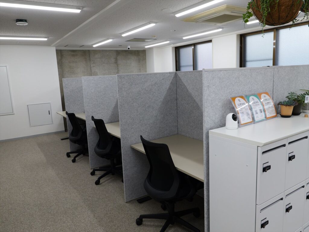 個室レンタルオフィスは3タイプ6室。5.2㎡の1名用から8.2㎡の2名用まであり、各室に個別換気を完備。