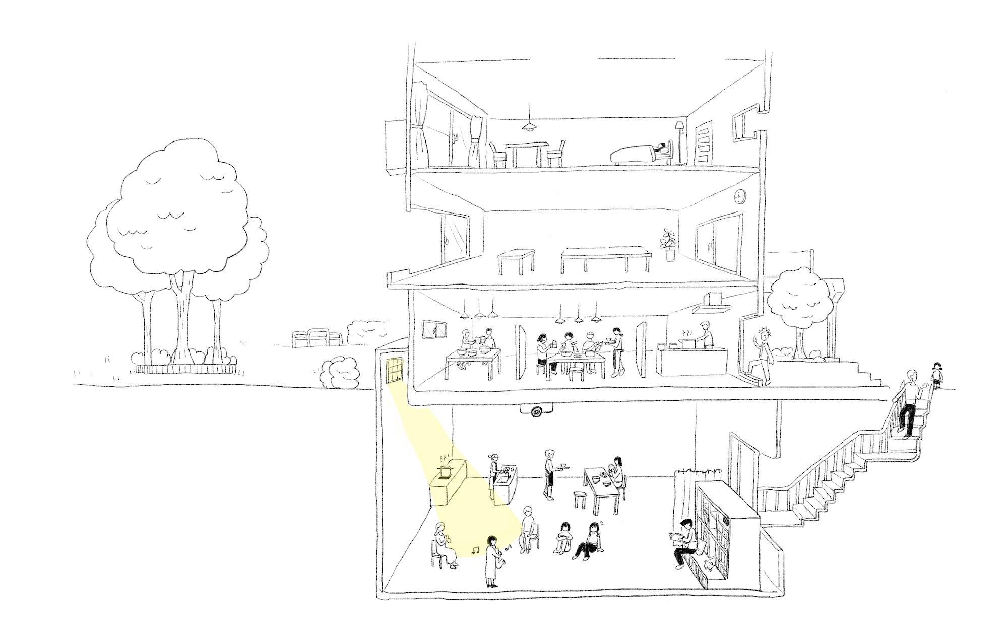 それで、商業用に貸し出していたこの地下空間を自主管理の多目的スペースへと思い切って変えることにしたんです。
