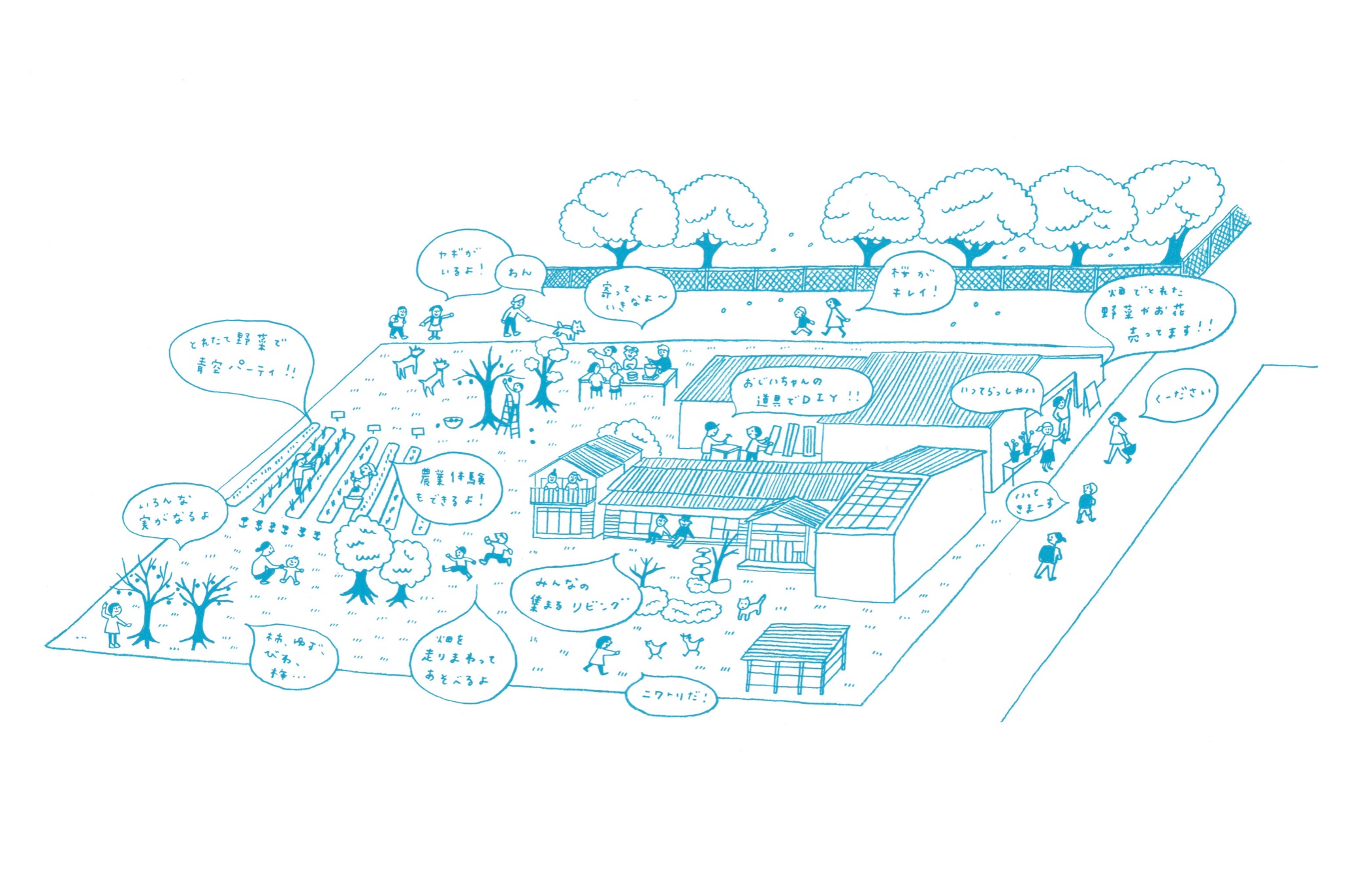 大家の学校で「やりたいことをイラストにしてみたら?」とアドバイスをもらい、まずは畑の構想を全体像として描いて発信したところ、共感した住人さんや地域の人たちが自然と集まってくれました。