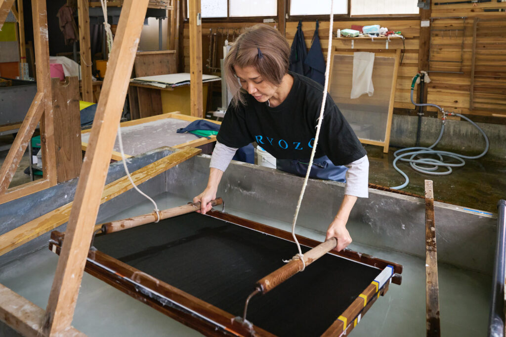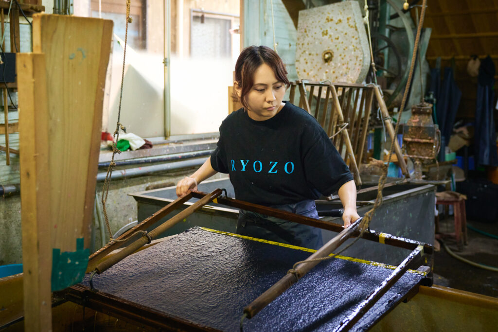 1946年創業の「栁瀨良三製紙所」は、手漉き和紙を専門に製造する工房です。金型や紗型を使い、用途や要望に応じて光を透かすほど薄く、しなやかな手ざわりの和紙を漉いています。