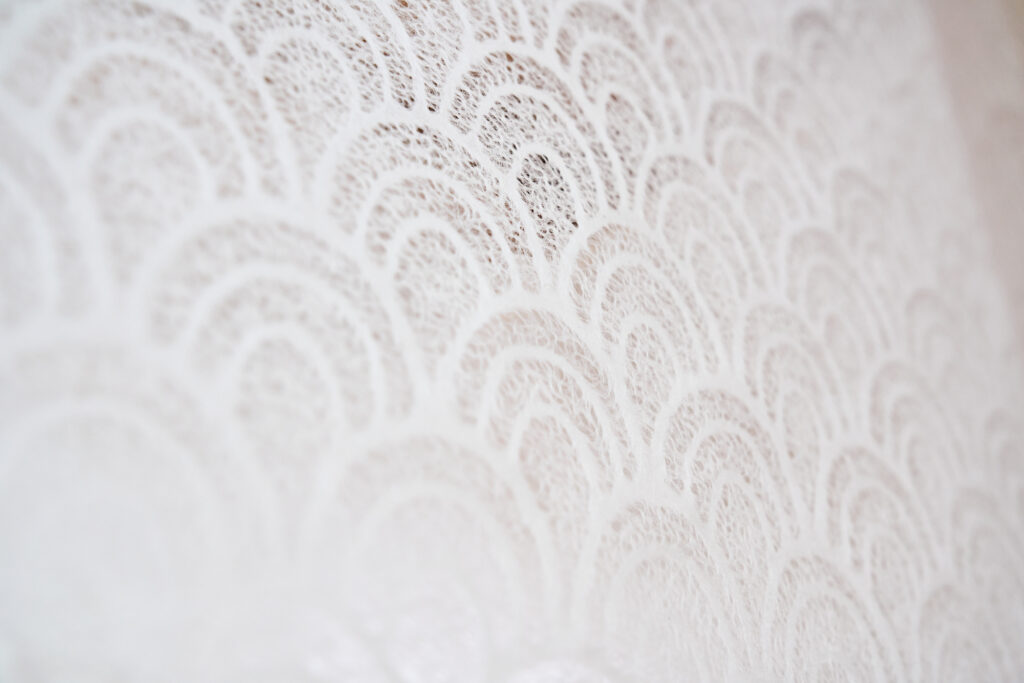 先ほど漉いた紙の乾燥が終わった様子。そっと端をつまみ、ゆっくりとはがしていくと、金型の模様が美しく浮かび上がります。光にかざすと、透けた部分から光がこぼれ、繊細な陰影を描きます。