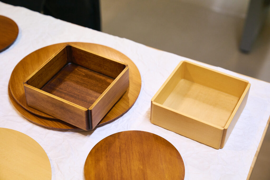 創業からおよそ60年。箱物やお盆などの「角物(かくもの)」を中心に木地制作を手がけてきました。