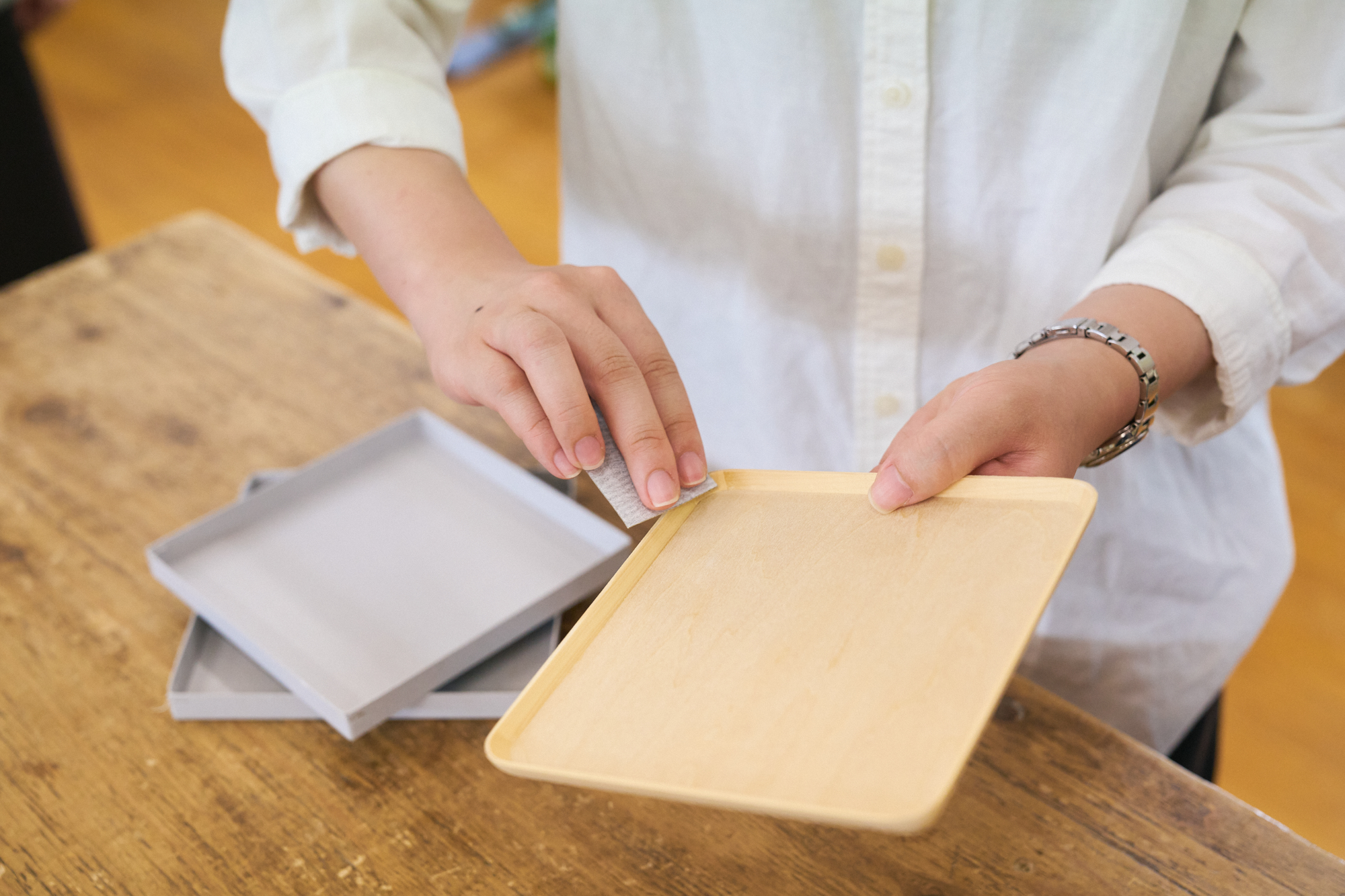 木肌の手ざわりを感じながら、少しずつ滑らかになっていくと、自分の手で仕上げていく実感が湧いてきます。