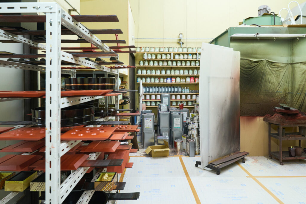 吹付け塗装に使う塗料は、常時100色以上。色を混ぜることで、そのバリエーションは無限に広がります。