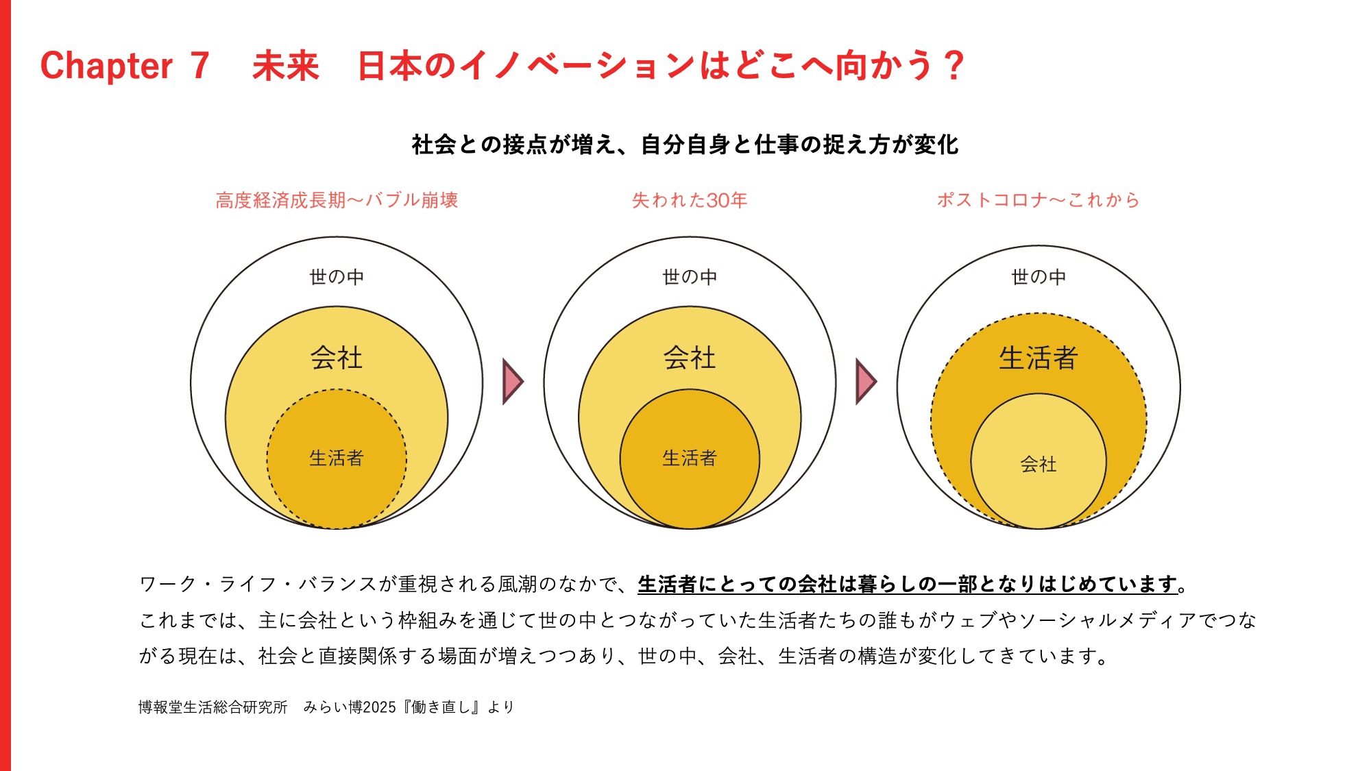 また、個人がSNSで社会に直接影響を持てる今、会社という枠を超え、一人の生活者としてワークとライフを分けすぎずに活動する大きなシフトが起きています。