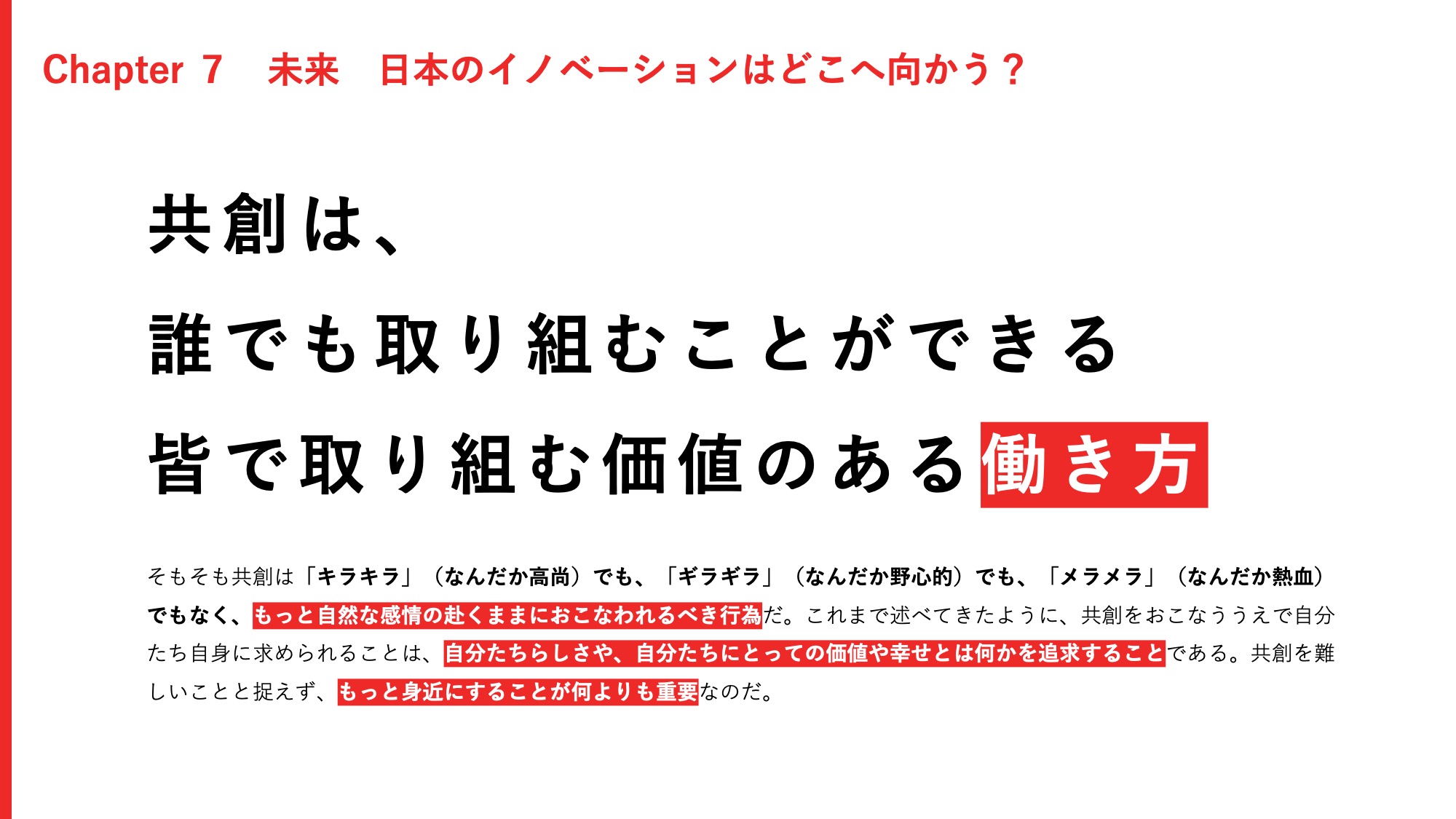 私は共創を「誰もが取り組むことができるみんなで取り組む価値のある働き方」であり、「共通善(社会的利益)に向けて価値創造をすること」と定義しています。