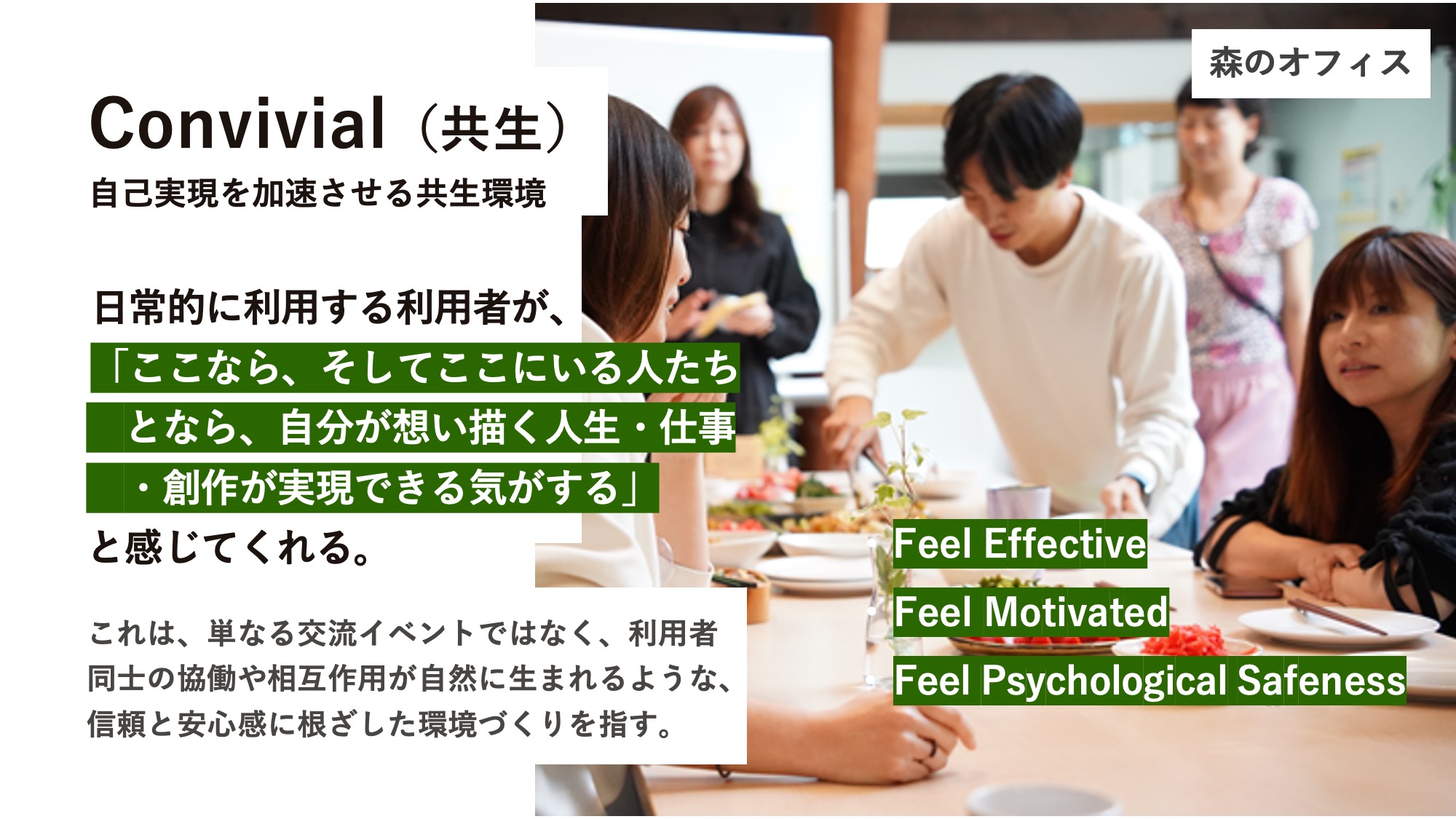 Convivial(共生)な関係性が出来ているので、阿吽の呼吸で仕事ができる。これは会社から命令されて動くよりも、はるかに強固な関係です。