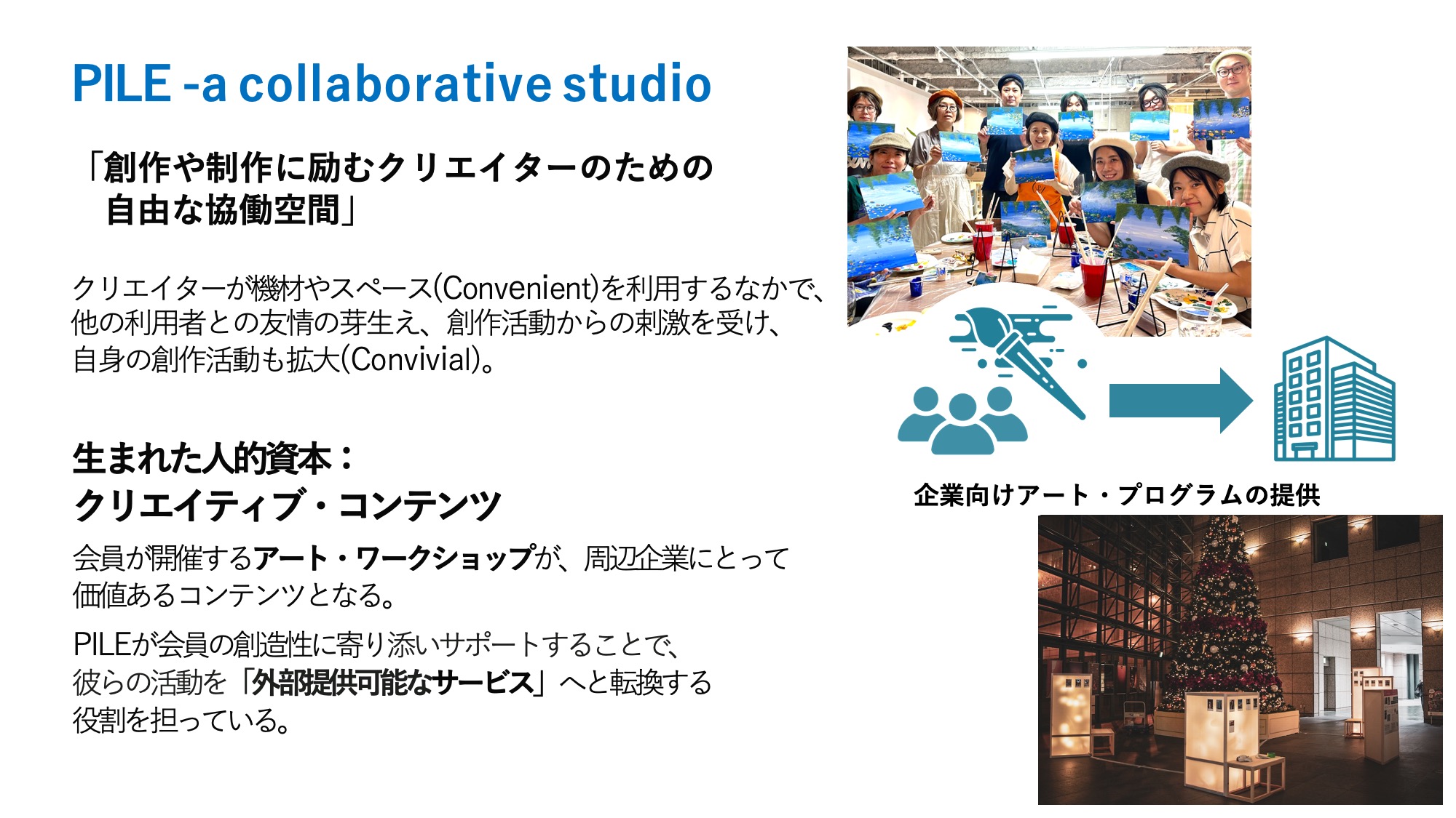 PILEでも、心理的安全性を感じてくれているクリエイターが自発的に始めたワークショップが、外部企業から依頼される売り物(コンテンツ)へと成長する現象が起きています。