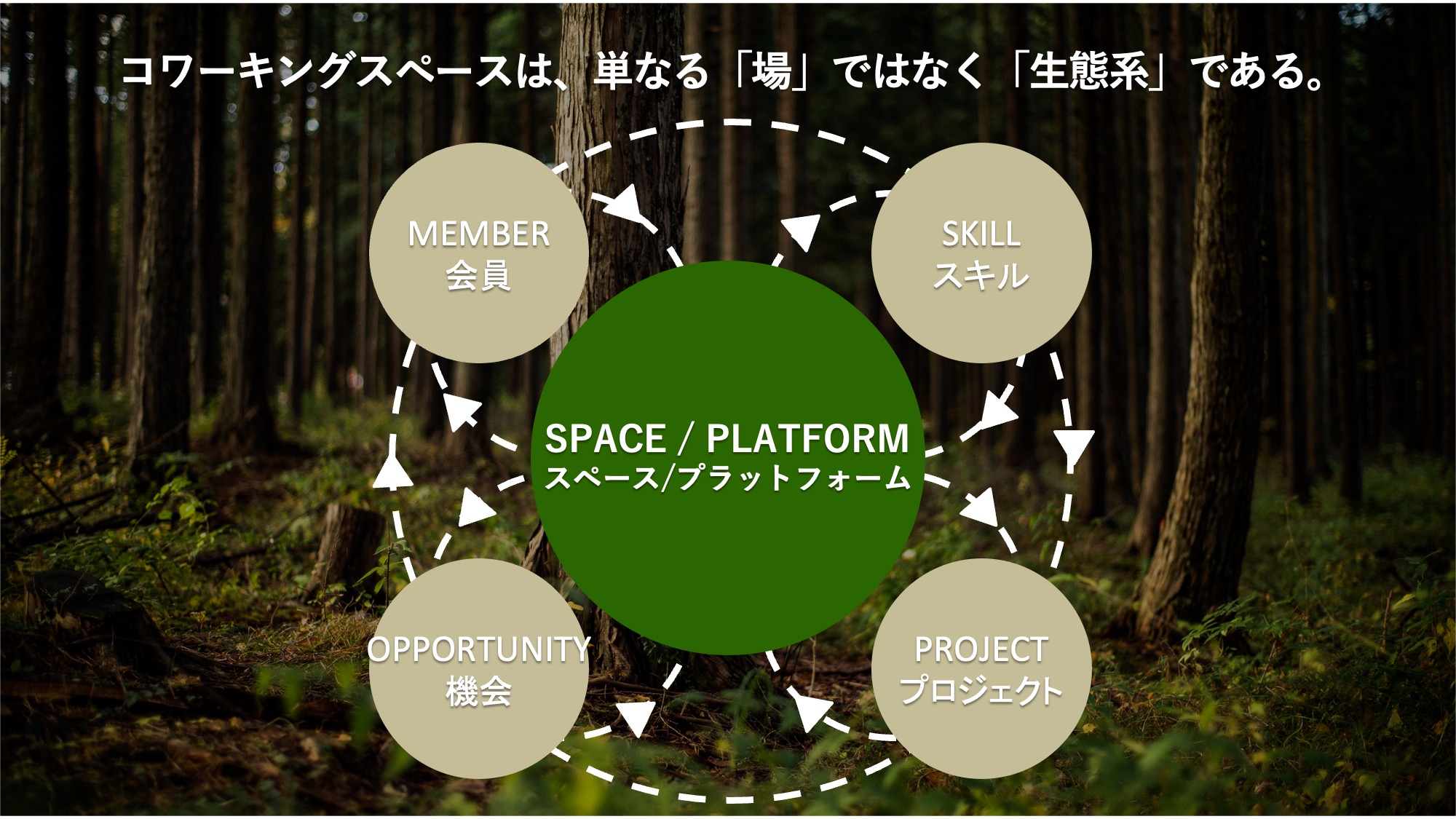 そう考えながら活動をしていると、「コワーキングスペースは自然の生態系に近い」と感じるようになりました。