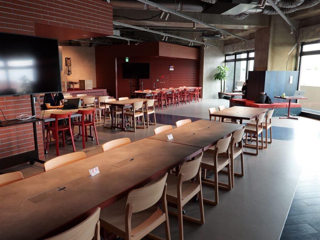イベントスペースとコワーキングスペースの間に、物理的な壁を設けていないことも利用者の交流を促す演出の1つ。45度傾けた空間構成を生かし、音が壁に反射して減衰するため、音声はコワーキングスペースにはホワイトノイズのように聞こえ、作業者の仕事を妨げない。利用者はコワーキングにいながらイベントの様子を感じ取れるという。またイベントスペースは、通常はコワーキングスペースとしても利用できる。