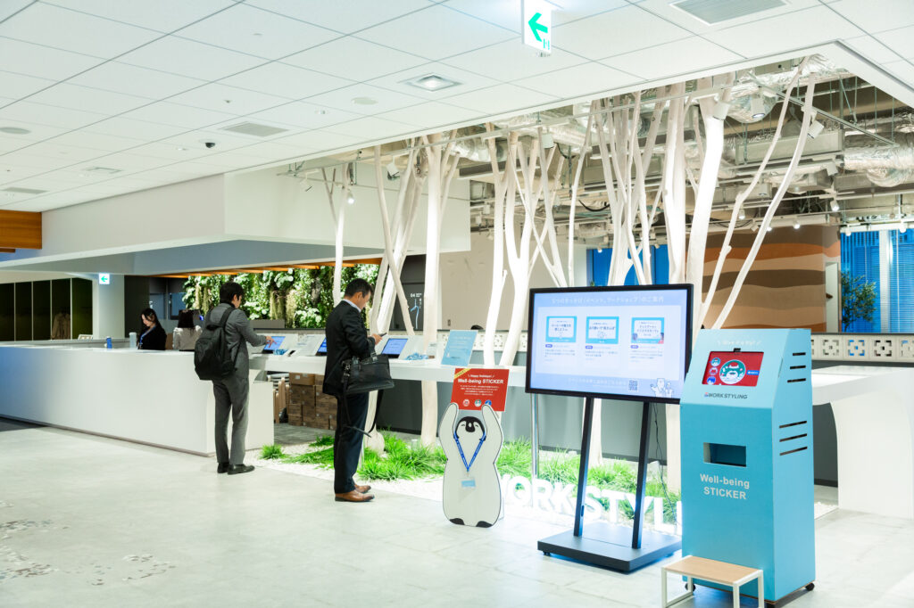 入口の横には、撮影した自分の顔写真を元に作る「オリジナルウェルビーイングステッカー」を印刷できるマシンがあり、誰でも体験できるそう。