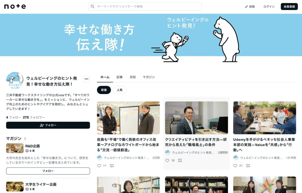ワークスタイリングでは、場だけでなく「ウェルビーイング」をテーマにしたnoteも運営されていますよね。