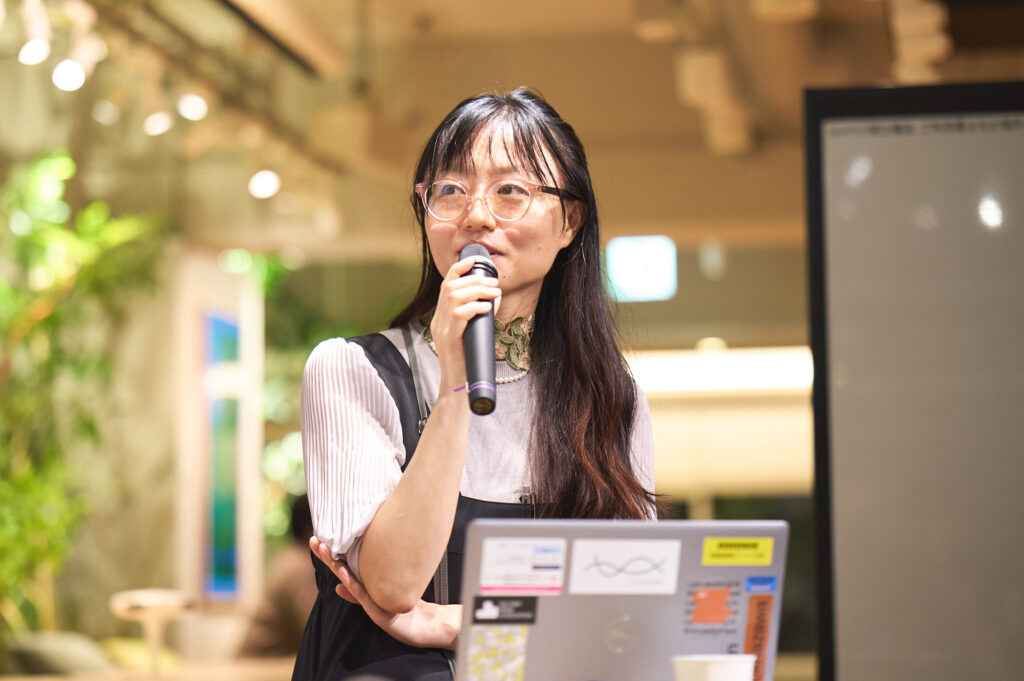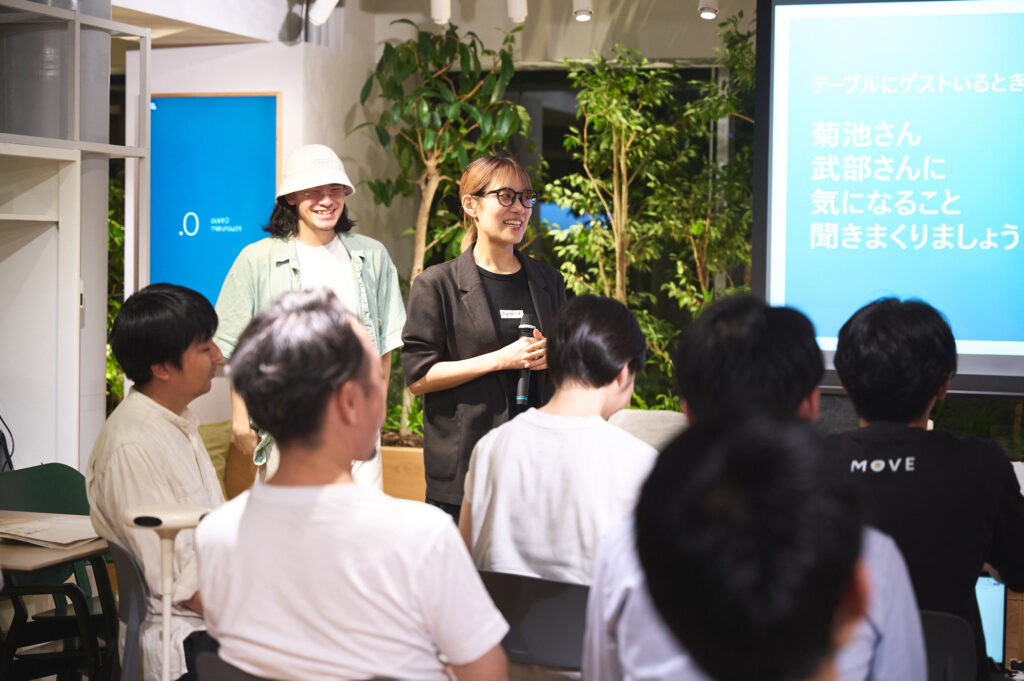 「お二人にどんどん聞きまくりましょう!」と笑顔で進行するWORK MILL編集部メンバーで、プロジェクト発起人の宮野玖瑠実(みやの・くるみ)。参加者さんの緊張感もふわっと和んだ様子でした。