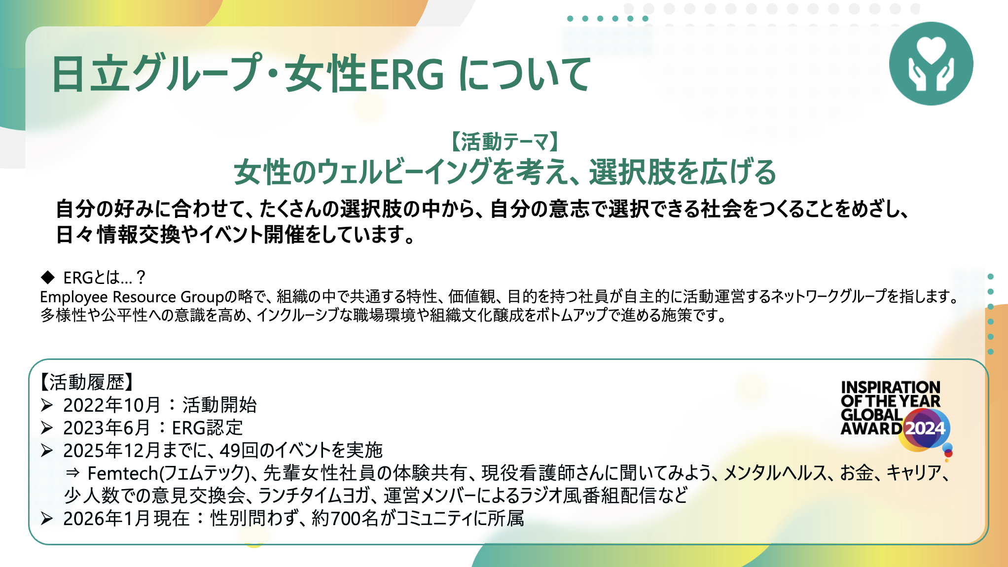 そして、2025年12月末までに49回のイベントを実施してきました。2023年からはERGの認定を受け、会社公認の活動として運営しています。